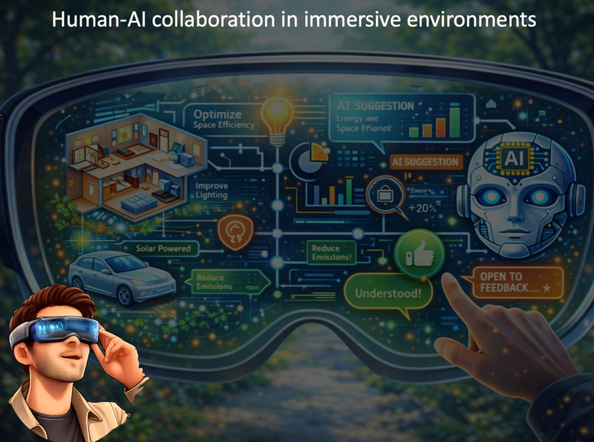 Looking ahead, the integration of AI into XR applications is expected to increasingly rely on advanced human-AI collaborative frameworks, enabling the emergence of XR hybrid intelligent systems in which human expertise and AI capabilities are tightly coupled within immersive environments. Immersive spaces allow AI systems to observe user actions, gestures, speech, and attention in context, while users can directly perceive and interact with AI behavior. XR hybrid intelligent systems will facilitate not only intelligent interactions and immersive experiences, but also personalised content generation that takes into account users’ knowledge, skills, and performance. For example, a virtual training assistant could dynamically generate immersive scenarios that specifically target and bridge individual knowledge gaps. Beyond content personalisation, XR hybrid intelligent systems will leverage user feedback to continuously adapt and improve system performance in alignment with evolving user needs. Key feature in these systems is to empower users in guiding, correcting, and shaping AI behavior over time.